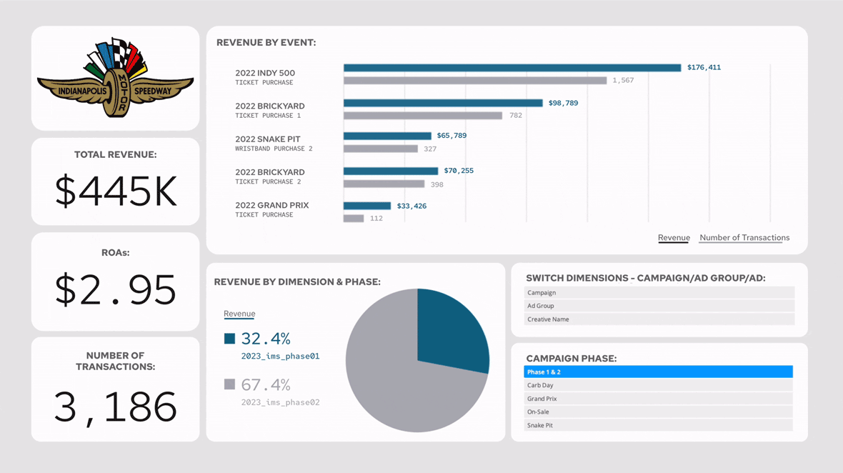 And for the Indianapolis Motor Speedway, we connected ticket sale revenue to media performance to fine-tune spend by event and boost efficiency across the board.